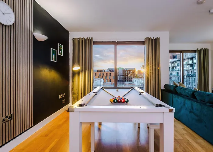 Sleeps 8, Duplex Apartment, Pool Table, Balcony X2, Long Term Disc, Perfect For Groups Manchester de 120 m² se trouve à proximité de plusieurs attractions touristiques et est à 6 minutes de marche d'Hope Mill Theatre. L'accès au ping-pong et le billard est offert aux invités actifs.